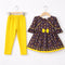 P&P - 2 Pieces - Frock Set - Purple - Yellow Bow & Flowers