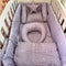 8 Pieces Cot Bedding Set - Light Purple - Mini Stars & Moon