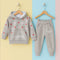 Mini - 2 Pieces - Hooded Set - Grey - Flowers & Hearts