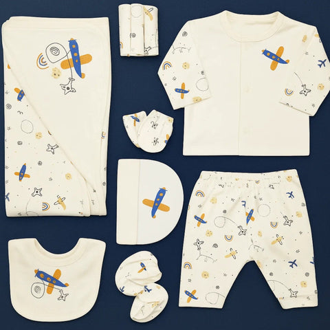 Stuff - 100% Cotton (Interlock) Brand : BRL Age Suitability - Newborn Till The Baby Can Wear Contains : 1 : Full Sleeves Shirt 2 : Open Feet Trouser 3 : Hooded Wrapping...