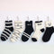 Tini Bear - Pair of 5 Socks - Black White - (Size L8-12)